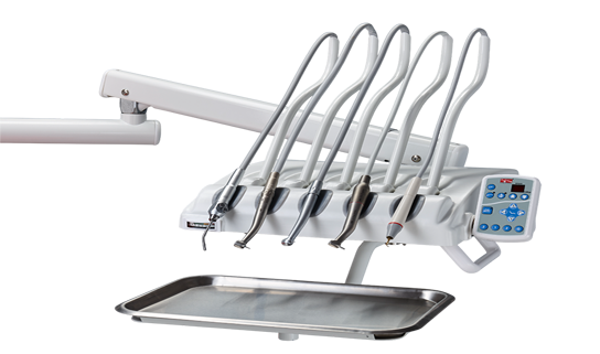• Manually operated over-patient delivery system — ergonomic access to instruments and handpieces