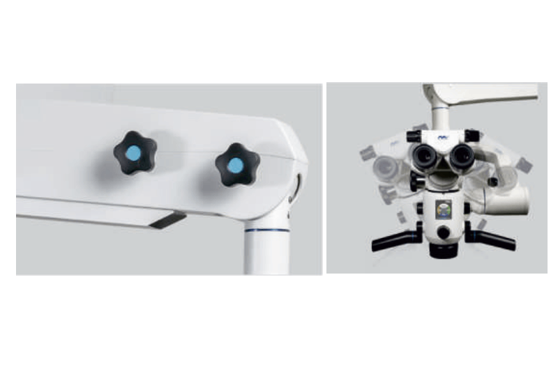 With only one finger, you can reach the magnification knob, multi-function knob and variofocus objective lens with upright sitting position.