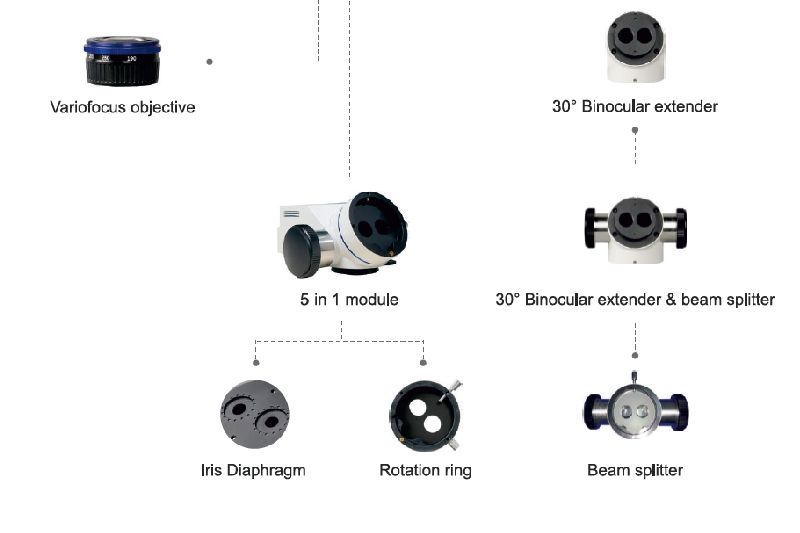 5 in 1 Module Integrate 30° extender, beam splitter, rotation ring, 4K camera and iris diaphragm, not only improves the optical performance, but also reduces the weight of external accessories. Internal 4K camera with lower noise, higher sensitivity and resolution. The iris diaphragm is able to control the depth of field.