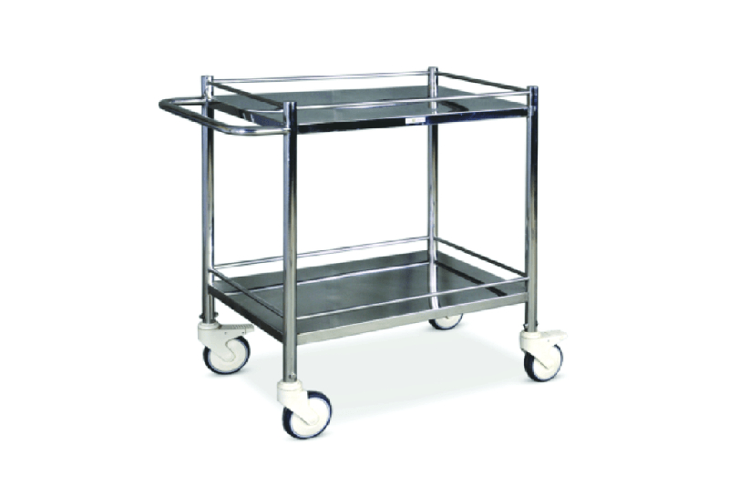 The vertical members are made stainless steel pipe of 25 mm dia 1.2mm thick. The trolley is provided with two stainless steel shelves of 1mm thick S.S